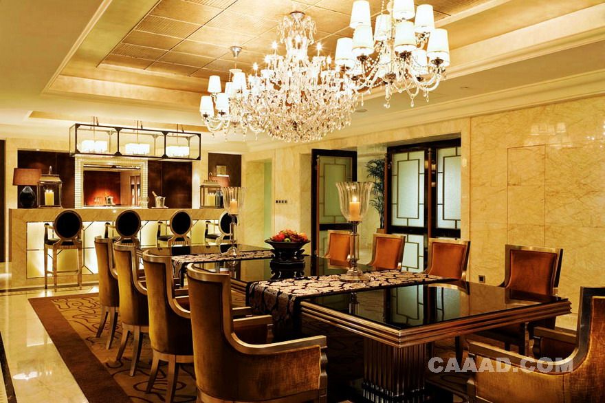 总统套房餐厅长形餐桌欧式餐椅吊灯