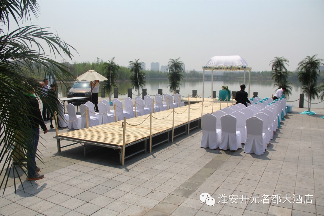 夏威夷海边风情户外婚礼展,用木板桥,凉亭,鲜花,绸缎打造,在美丽的清涟湖边展现独具特色的户外婚礼,在淮安,在我们开元名都大酒店,如果你选择这里办一场别致的户外婚礼,可以独享这份浪漫!