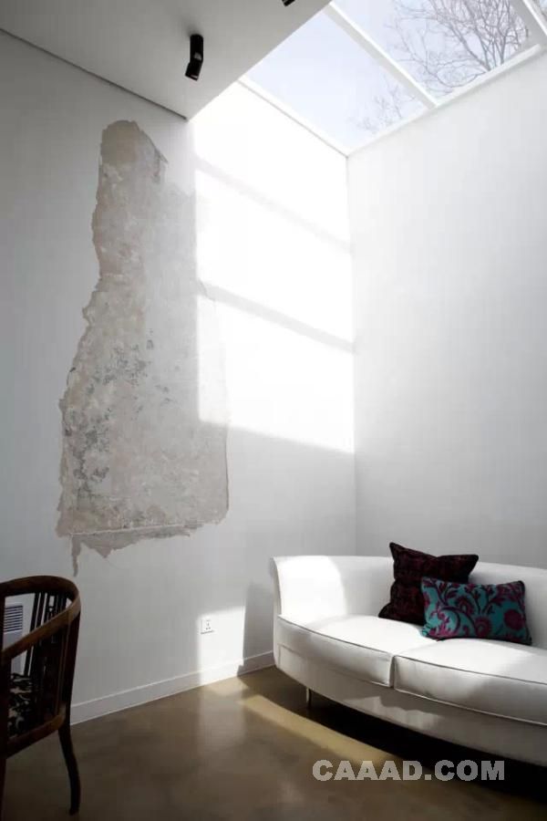 挑高的厂房空间、大面积的纯白色块,打破格局的水泥墙面,引入绿色和空气的落地大窗......胡同老房子加上现代空间设计,看似矛盾,却意外和谐。