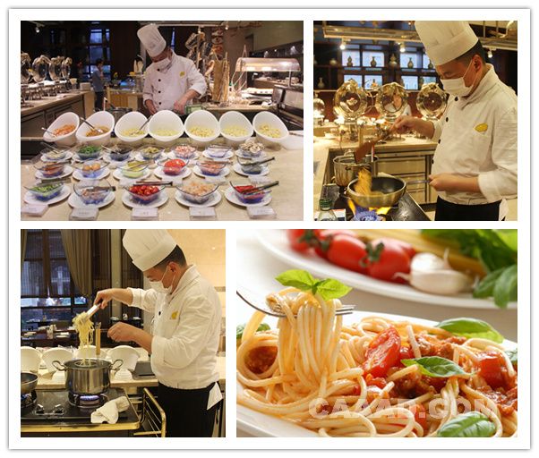 近日,安徽铜雀台开元国际大酒店推出意大利风情美食,西餐厅自助晚餐每天都会提供不同口味的美味披萨!更重要的是有主厨现场烹制各式意大利面哦!没有什么比意大利面更能代表意大利美食。蝴蝶面、螺丝面、通心粉任君挑选,您还可根据个人喜爱选择海鲜、茄汁、奶酪、肉酱等多种口味。
