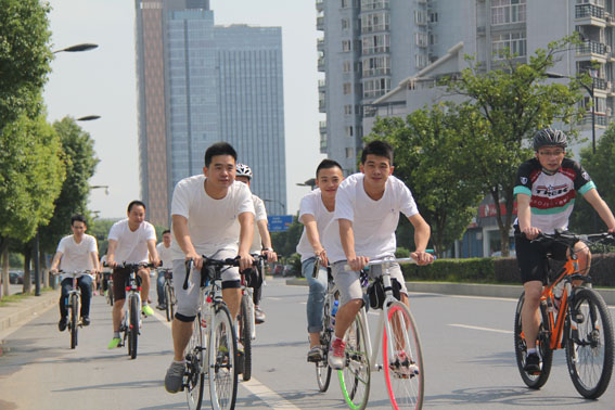 上午9点30分,所有参加骑行的员工在酒店大门处集合完毕后向既定路线出发,途经白云源路、乔林路、滨江路、学圣路,体验如画山水。特别是滨江路沿江路段的滨江公园更是许多老人、小孩及情侣的闲逛之所。