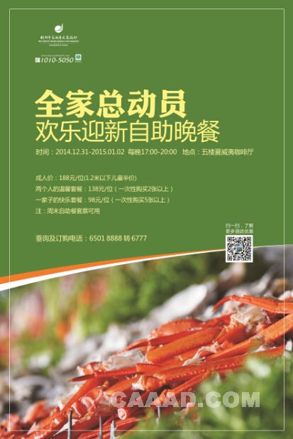 自助晚餐时间:2014年12月31日-2015年1月2日每晚17:00-20:00。