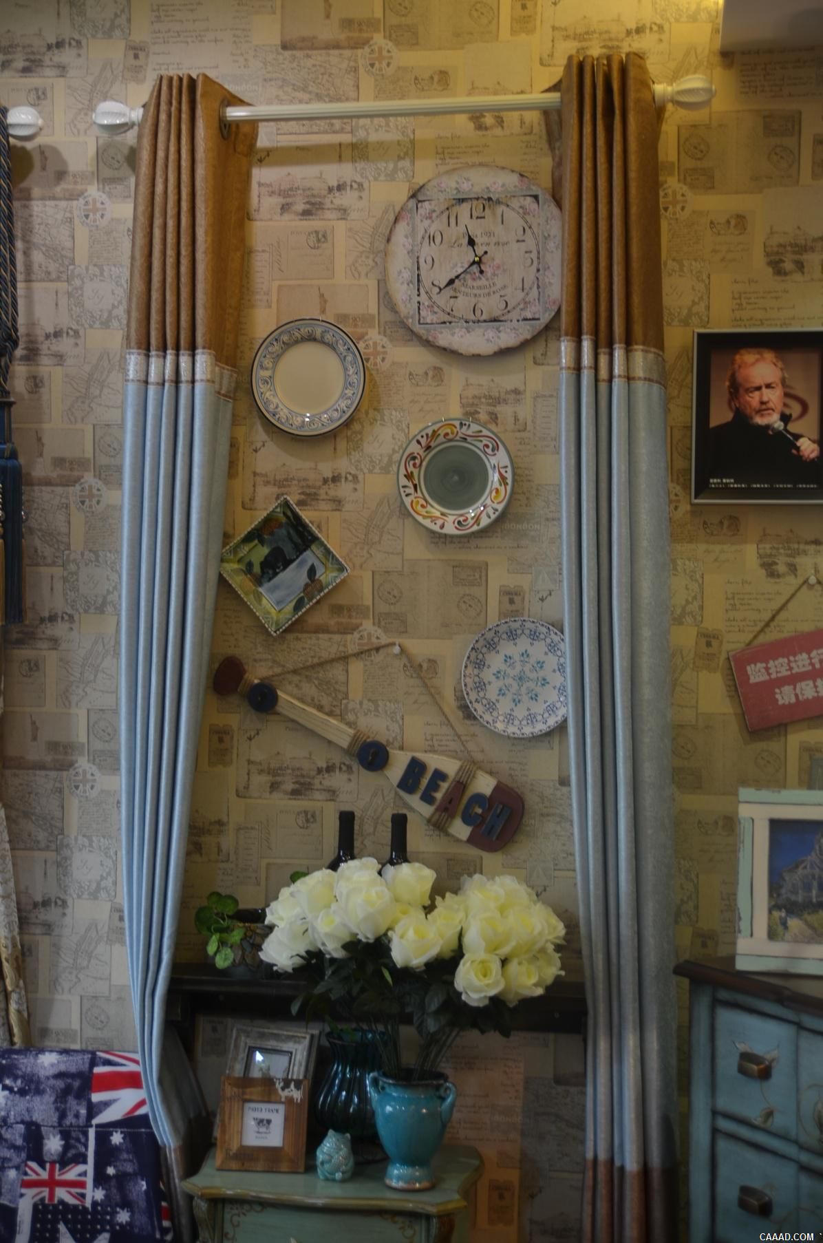 接着上图美式窗帘的搭配是棉布为主,上面往往描绘的颜色比较靓丽,色彩鲜艳或者图案的拼接,都能很好的和情境相配,给人悠闲、舒适的感觉。