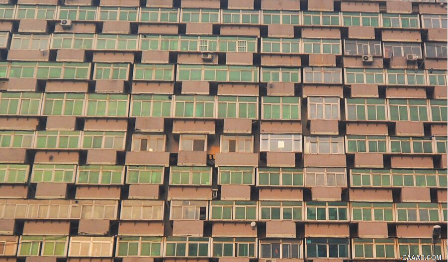 沈阳现阳台大楼一栋16层居民楼的300扇阳台密密麻麻贴在一起图