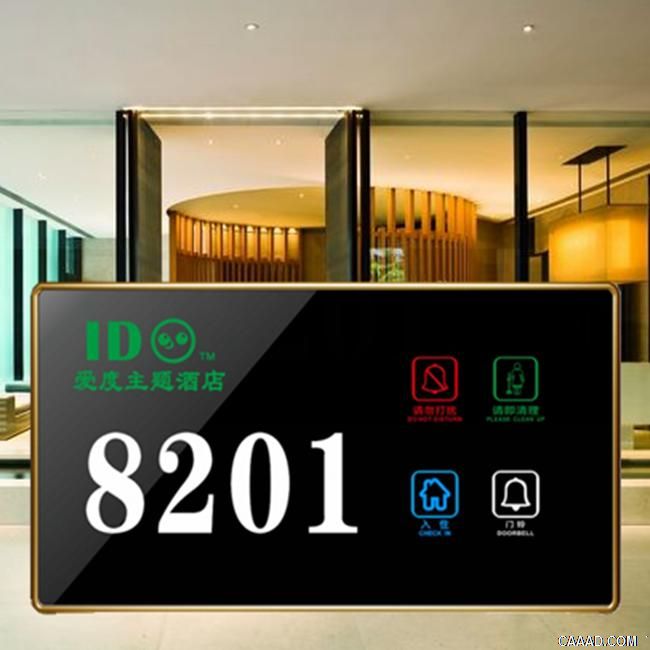 智能电子门牌是专为酒店客房精心设计,集房号显示及服务房态房间号、请勿打扰、请即清理、有人无人、触摸门铃按钮为一体的七合一酒店客房智能门牌。